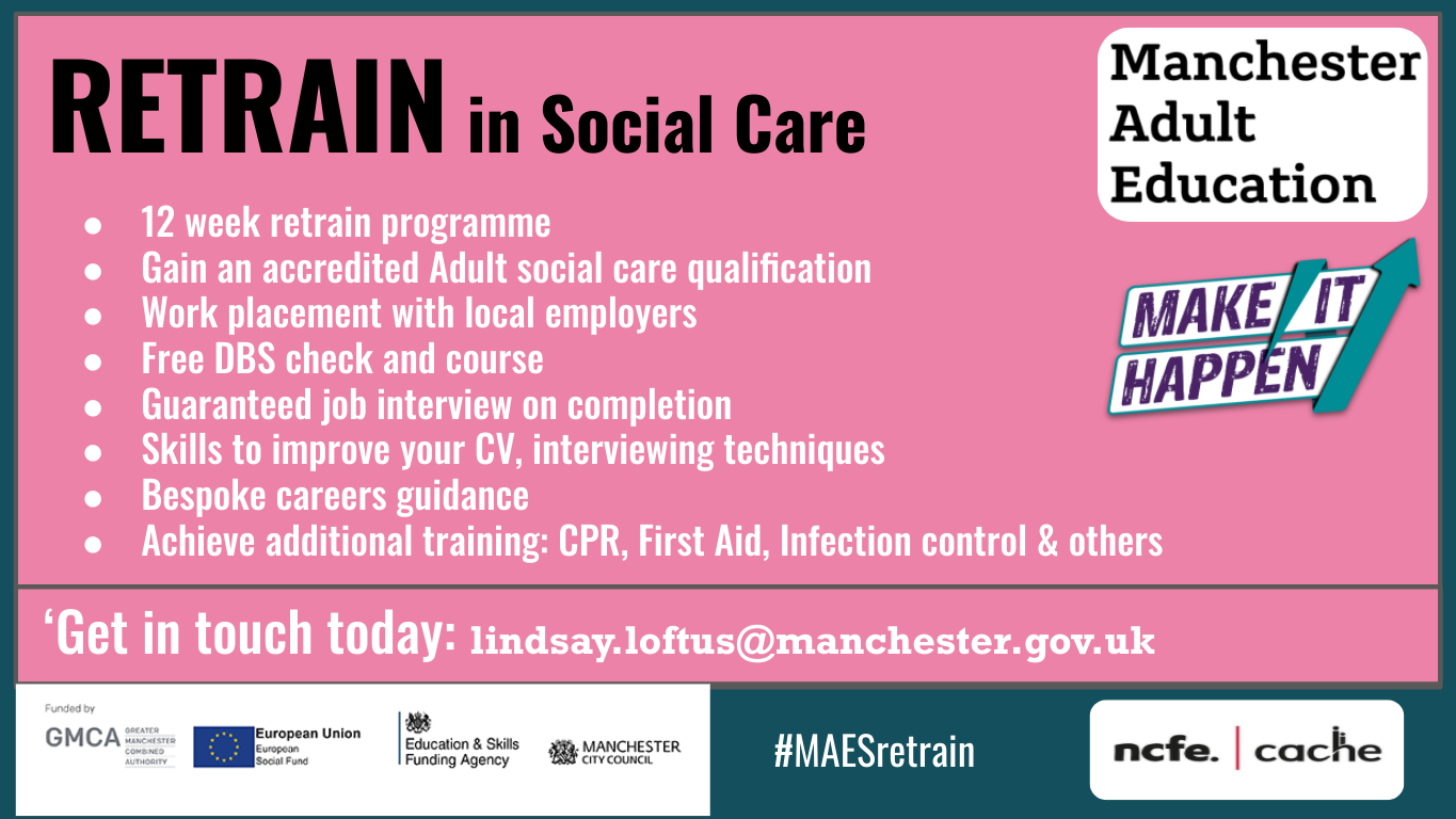 Retrain in Social Care 12 week retrain programme to gain an accredited Adult social care qualification
