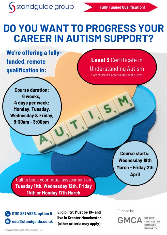 This course will give you an understanding of autism and the principles of supporting individuals with autism. You will look at the person-centred approach and the influence that positive communication methods can have and will gain an understanding of how individuals with autism can be supported to live healthy and fulfilled lives.