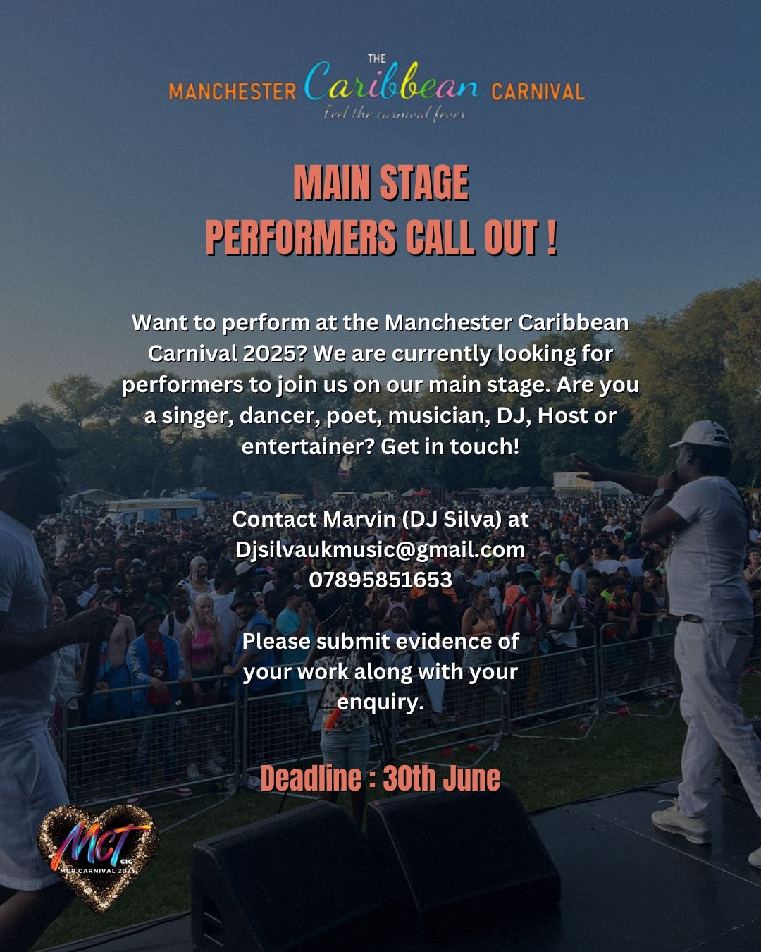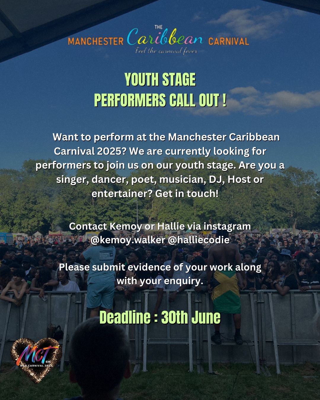 The Manchester Caribbean Carnival are looking for performers to join them on their stages. This includes performers on their main stage - and young performers on their youth stage.