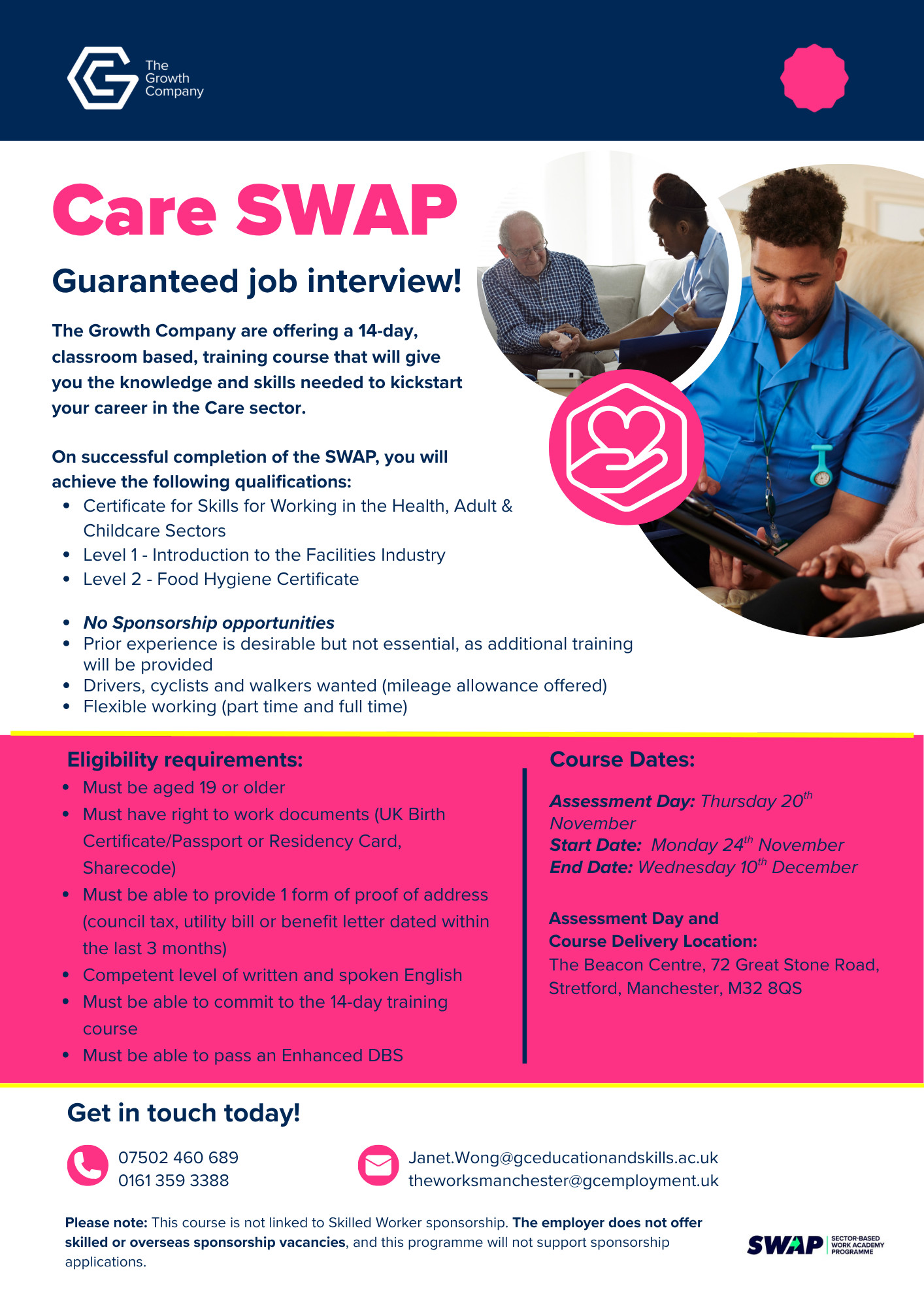 Entry Requirements: Must be aged 19 plus and a resident of Greater Manchester.