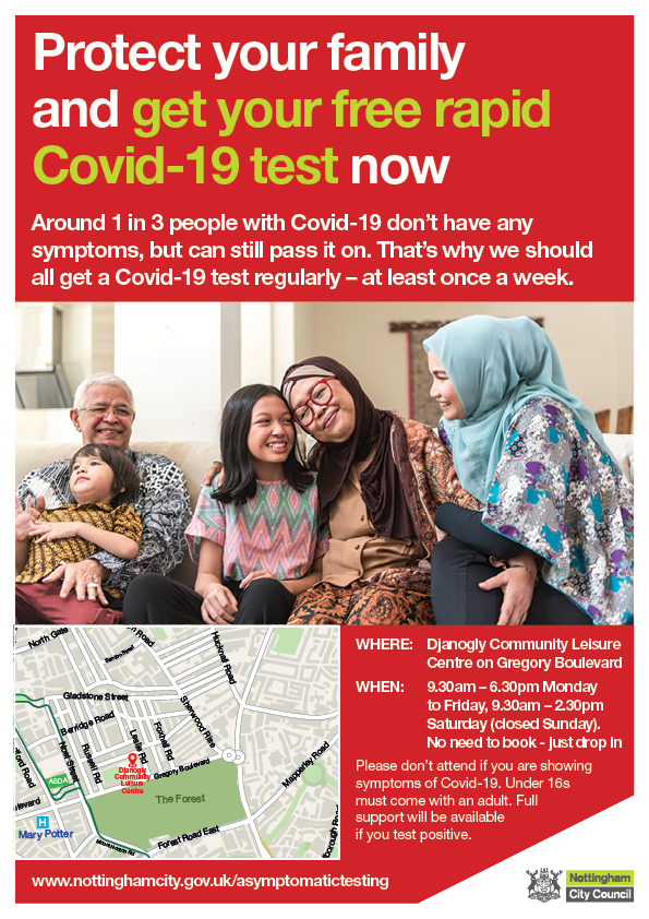 The centres are run by Nottingham City Council and will encourage people without symptoms of Covid-19 (also referred to as asymptomatic) to drop in and get a FREE rapid Covid-19 test.