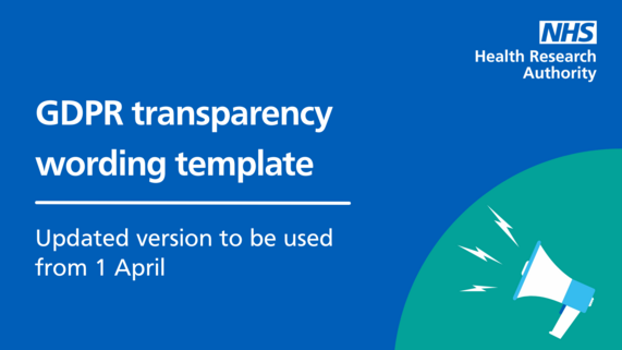 We have updated our GDPR transparency wording template to bring it in line with our Participant Information Quality Standards and the four principles for meaningful involvement of patients and the public in health and social care research.