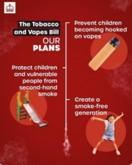 A revised Tobacco and Vapes Bill, building on legislation introduced by the previous government but interrupted by the election, was approved by MPs in the House of Commons at its second reading in November 2024. The main components in the Bill are: