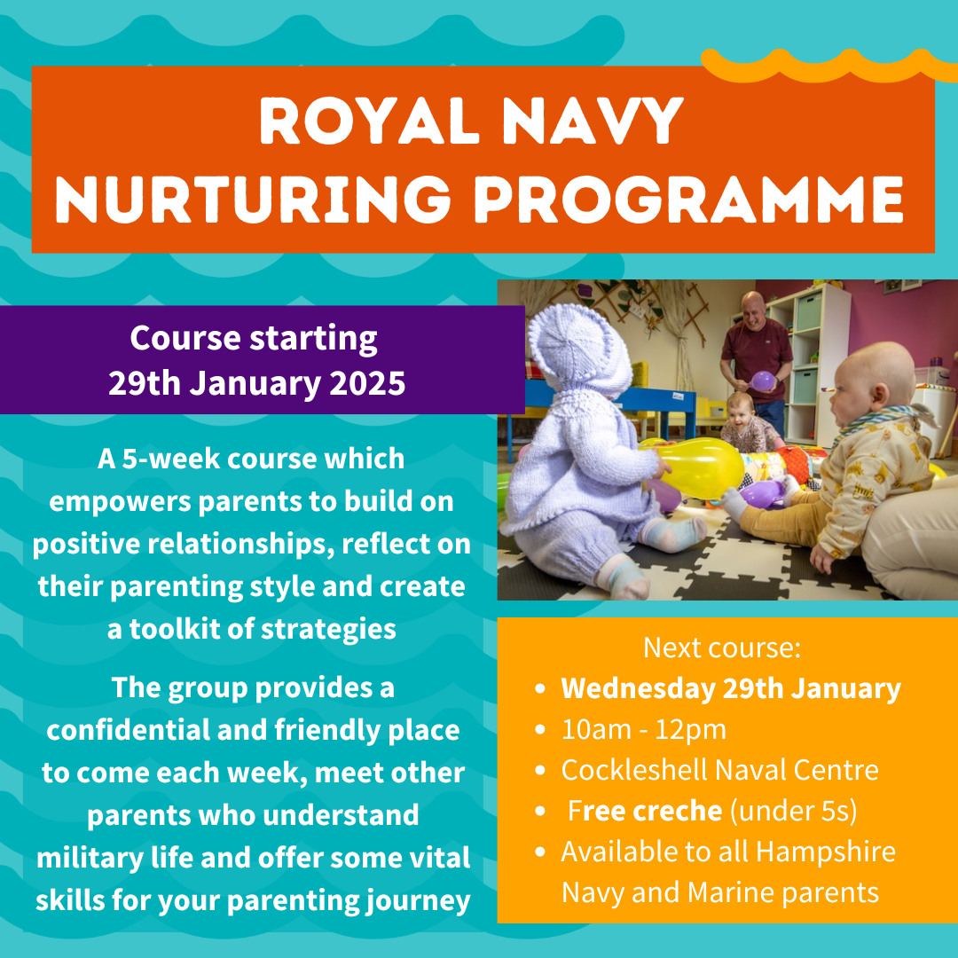 The next course starts on Wednesday 29 January 2025, 10am - 12pm at Cockleshell Naval Centre. There is a free creche for under 5s.