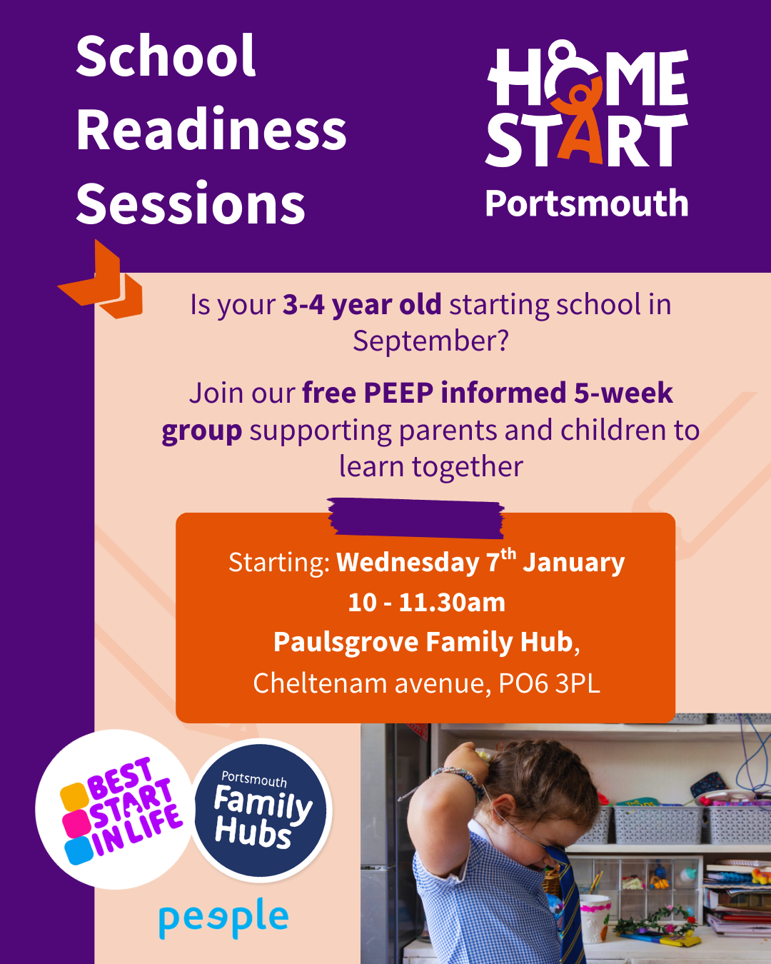 Home-Start are running a 5-week PEEP-informed group, starting Wednesday 7 January at Paulsgrove Family Hub. Families can book on via the stay and play booking link.