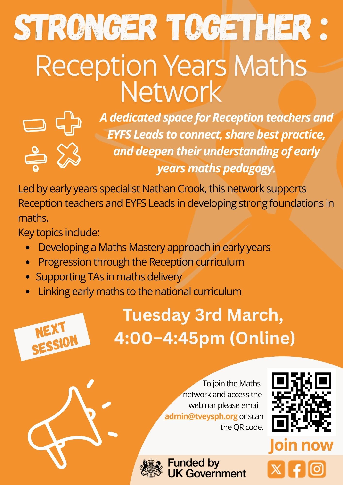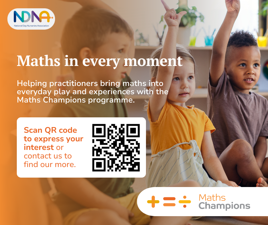 DfE and NDNA are offering a limited number of funded places on the Maths Champions programme (usually £1,205), designed to help early years practitioners build confidence and embed maths into everyday practice through play, routines and low-cost resources.