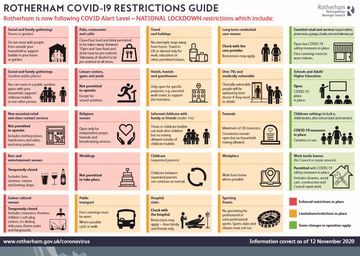 Click here to find out more about what the national restrictions mean in Rotherham and where you can get support