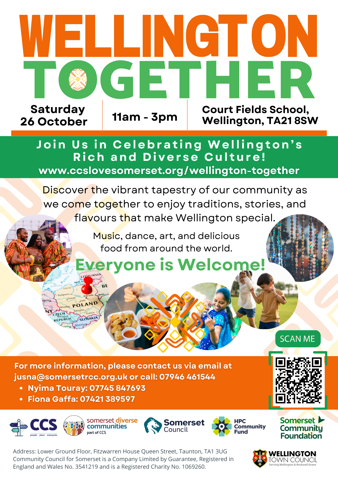 The Community Council for Somerset is holding a community event to celebrate culture and creativity at Court Fields School, Wellington on 26 October from 11am to 3pm at Court Fields School, Wellington.