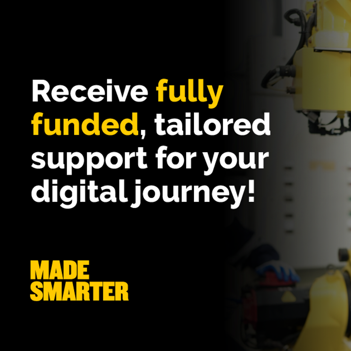 Made Smarter supports manufacturing SMEs to become digitally ready and adopt the latest technologies, from automation and data systems to advanced manufacturing tools, with fully funded expert support, training, and the opportunity to apply for a grant of up to £20,000.
