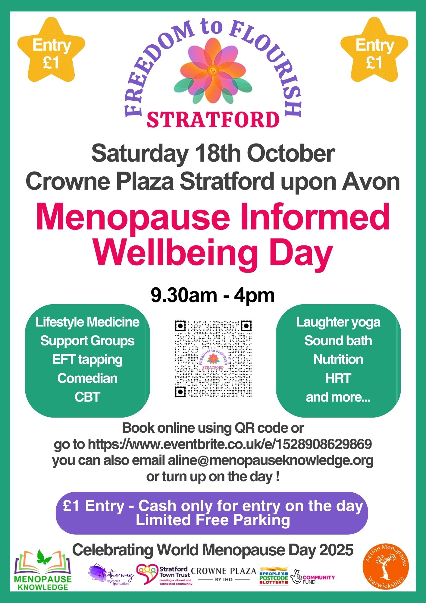 A menopause informed wellbeing day that puts YOU at the centre of your journey. Tickets cost £1 which includes a goodie bag, all group activities and talks on the day. Exclusions are products and services in the marketplace hall.This community-driven event brings together expert speakers, holistic practitioners, and local support organisations to break down barriers, bust myths, create connections, and empower everyone with knowledge and choice.