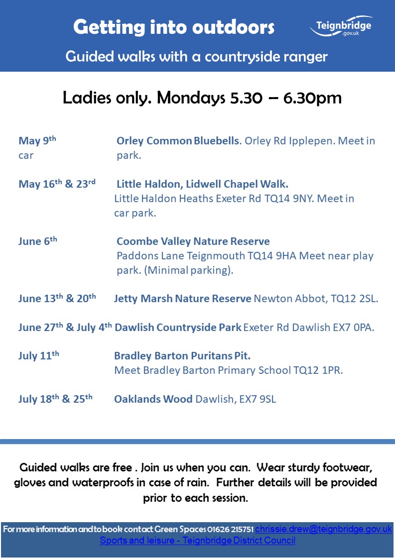 In Teignbridge we have a number of initiatives, led by our countryside rangers, to help connect people who are socially isolated, struggling with low mood or anxiety to connect to nature and make social connections. They take place in a variety of our green spaces between April – September.
