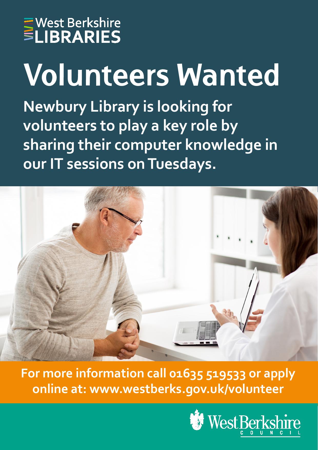 We’ve had such a good response to our libraries' tuition offer for adults of all ages seeking further help with IT that these sessions are already fully booked! If you would like to volunteer to share your computer knowledge in these IT sessions, please call 01635 519533 for more information, or you can apply online.