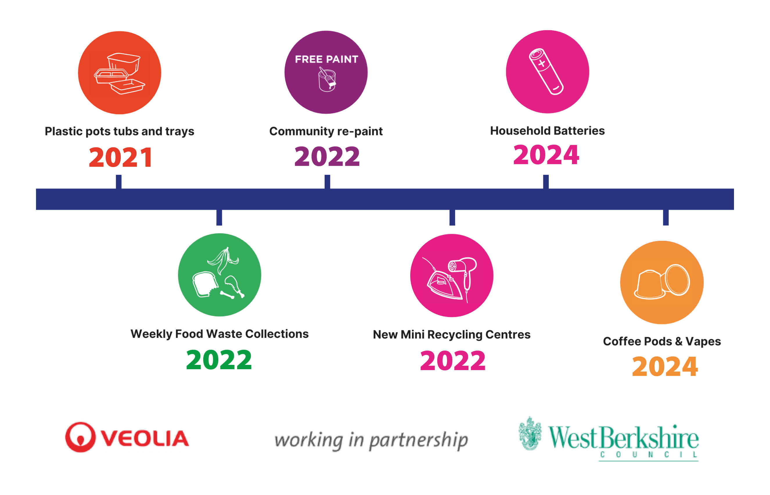More recently, 2024 has seen the introduction of new services such as: battery collection at your doorstep, and coffee pod and vape recycling at our HWRCs.