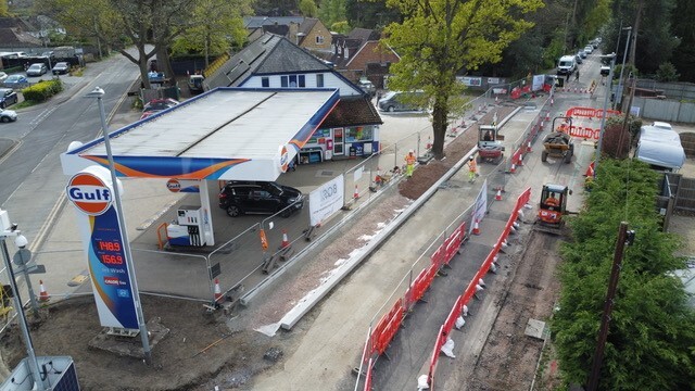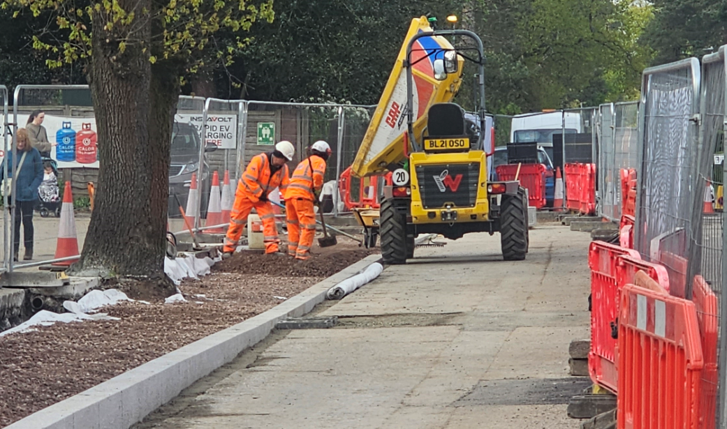 We have ensured the car park remains accessible throughout the project. Access to the car park was switched back to Finchampstead Road this week and is no longer accessible from Nine Mile Ride. This to allow the team to start laying the new kerb line and footway paving on this approach to the crossroads.