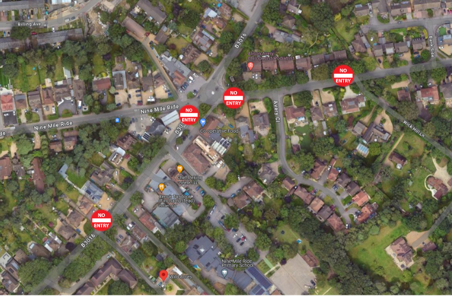 We then plan to close Finchampstead Road from Wild Acres Rest Home to the crossroads and Nine Mile Ride will be closed from the junction of Wick Hill Lane to the crossroads.