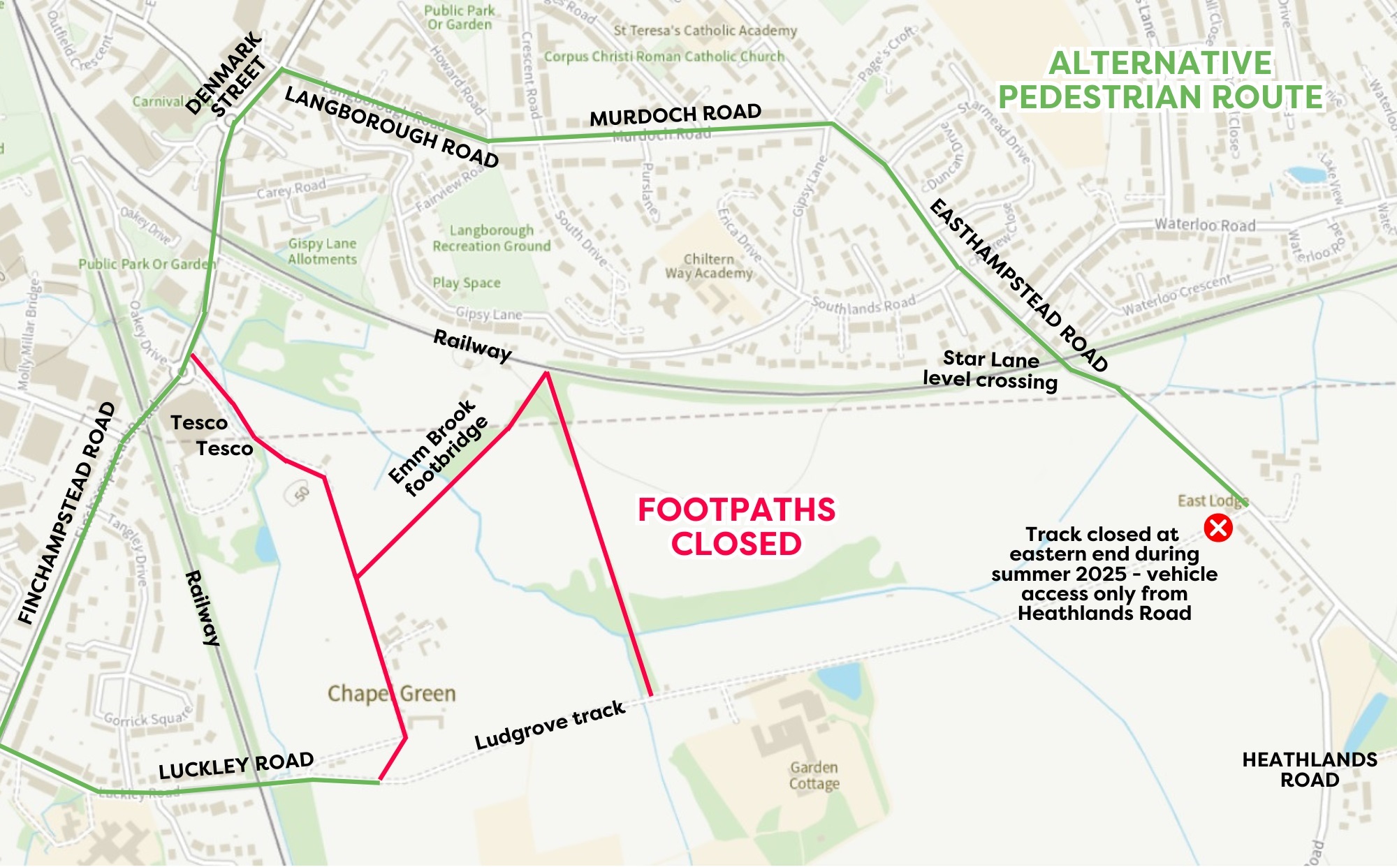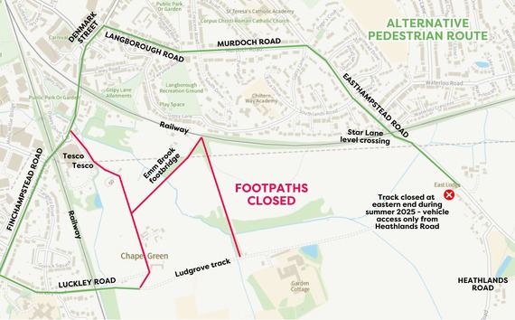 All public footpaths off Finchampstead Road, Gipsy Lane, Luckley Road and the private Ludgrove access track may be closed until mid-2026 at the earliest.