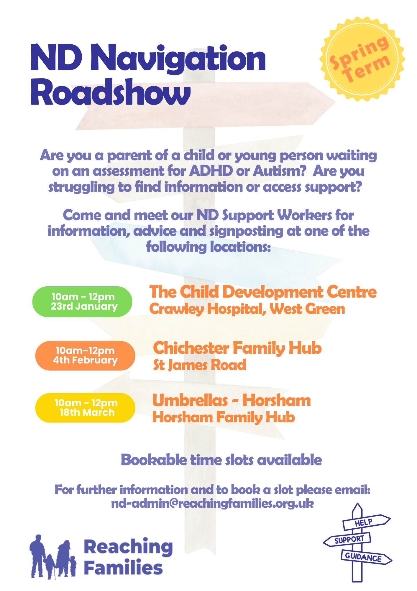 Parents of a child or young person waiting on assessment for ADHD or Autism can meet with one of our ND Support Workers for information, advice and signposting.