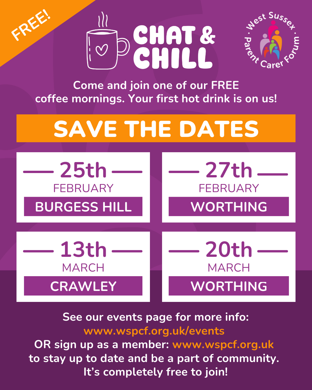 Hello everyone, if you haven’t heard of us yet, we are The West Sussex Parent Carer Forum (WSPCF) a charity created by parent carers, for parent carers.