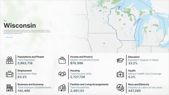 Explore Census Bureau data about Wisconsin as we celebrate its anniversary of statehood. Learn more about the state using data profiles and other interactive data tools.