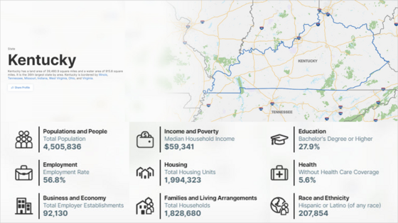 Explore Census Bureau data about Kentucky as we celebrate its anniversary of statehood. Learn more about the state using data profiles and other interactive data tools.