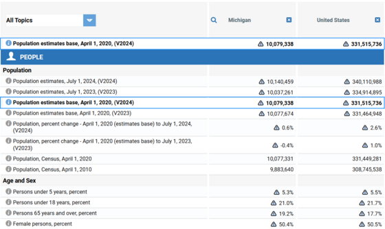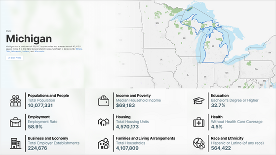 Explore Census Bureau data about Michigan as we celebrate its anniversary of statehood. Learn more about the state using data profiles and other interactive data tools.