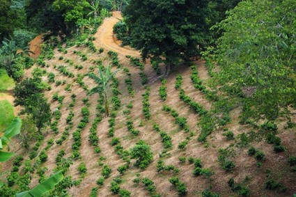 Finca de café de sombra que utiliza prácticas del programa de administración de la conservación.
