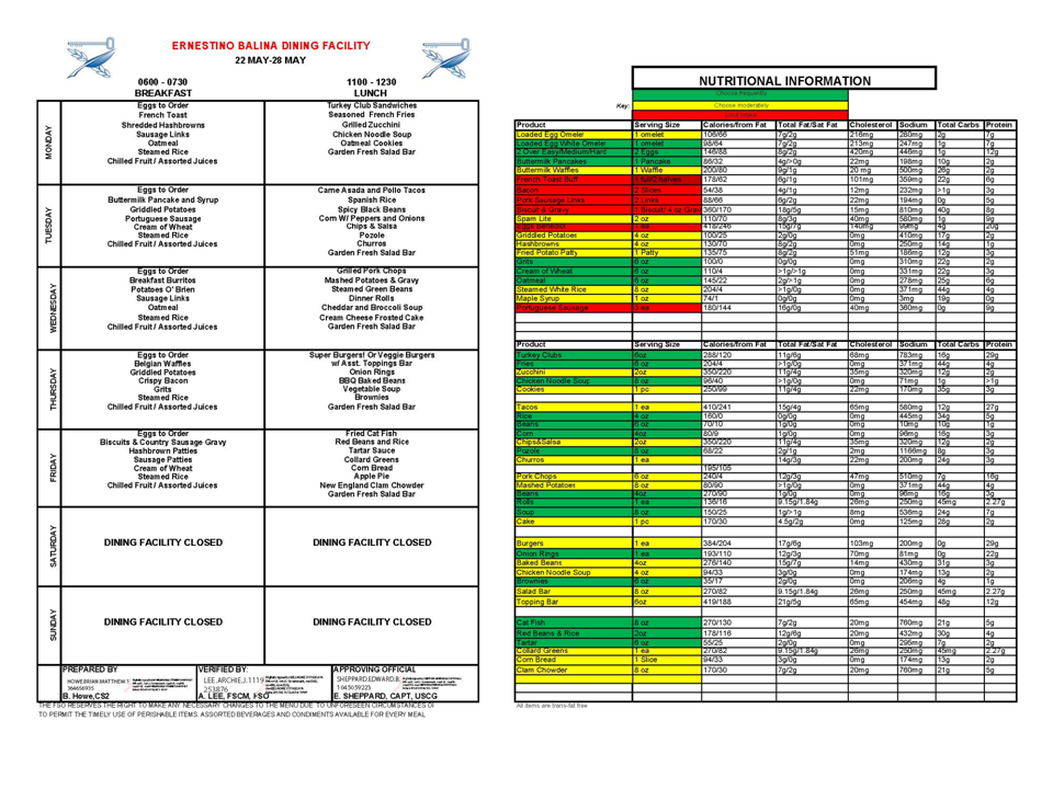 22May - 28May Base Honolulu Galley Menu Update