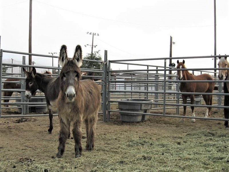Burro at Ridgecrest corrals. Photo by Alex Niebergs, BLM
