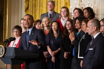 President Barack Obama delivers remarks commemorating the 50th anniversary of the Equal Pay Act, in the East Room of the White House, June 10, 2013.  (Official White House Photo by Pete Souza).