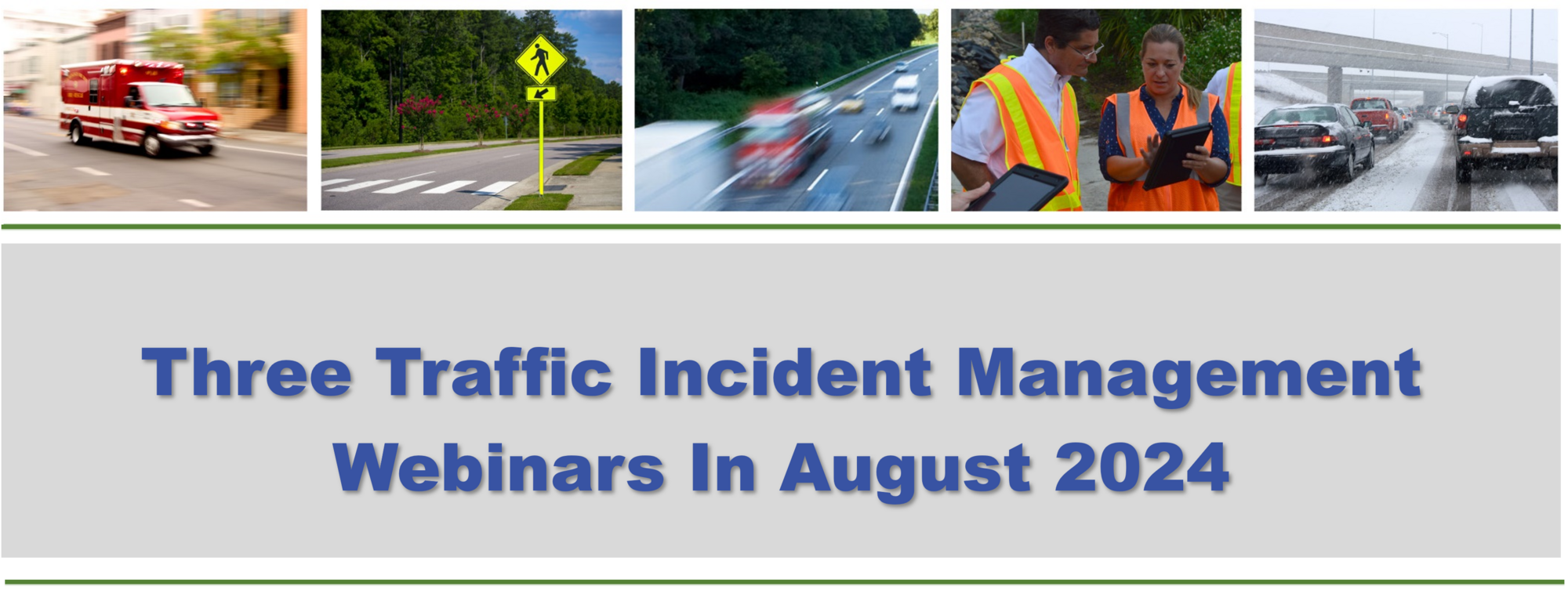 The Federal Highway Administration (FHWA) Traffic Incident Management (TIM) Program is pleased to share three upcoming TIM-related webinars:
