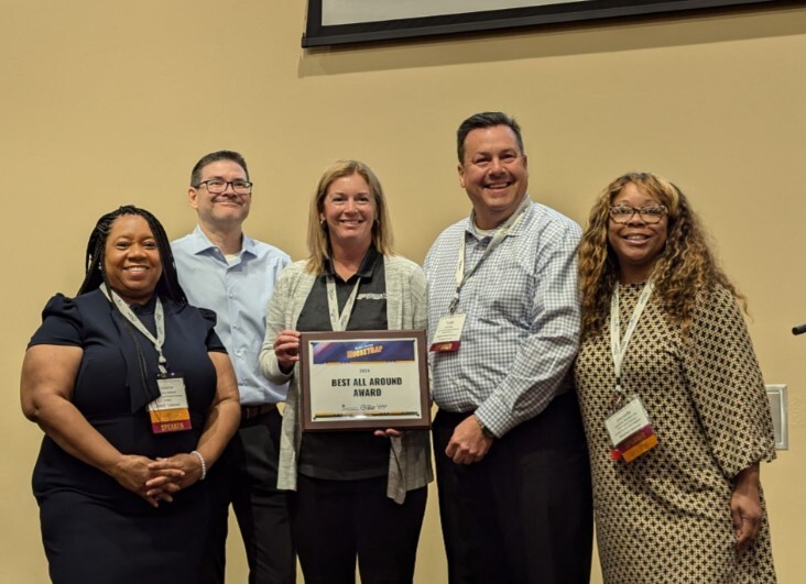 CLAS Program Manager Trinette Ballard, CLAS Acting Director Jeff Zaharewicz, Indiana LTAP Research Manager Jennifer Sharkey, Director of Innovation and Process Improvement for the Indiana Department of Transportation (INDOT)Todd May, and CLAS Program Manager Danielle Mathis-Lee joined the 2024 Build a Better Mousetrap All Around Winner at NLTAPA in Albuquerque, New Mexico.
