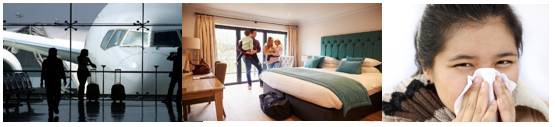 • Ventilation—Airflow affects how bacteria and chemicals travel through the air. When you arrive at your vacation destination, properly vent the rooms and check for unusual odors or chemical smells. Poor ventilation may cause a buildup of moisture and mold and promote dust mite growth.