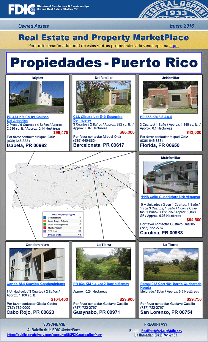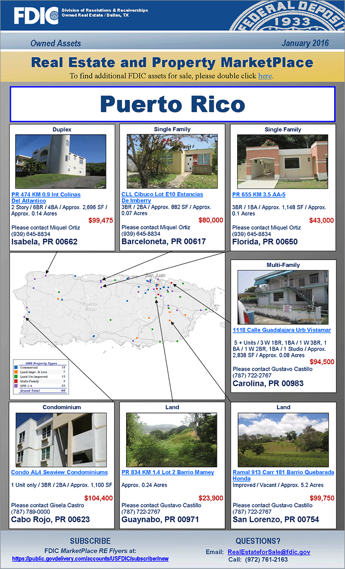 FDIC Real Estate for Sale: Puerto Rico Properties FDIC Subscriptions sent this bulletin at 01/29/2016 02:50 PM EST To view the English version of this flyer, please see below.
