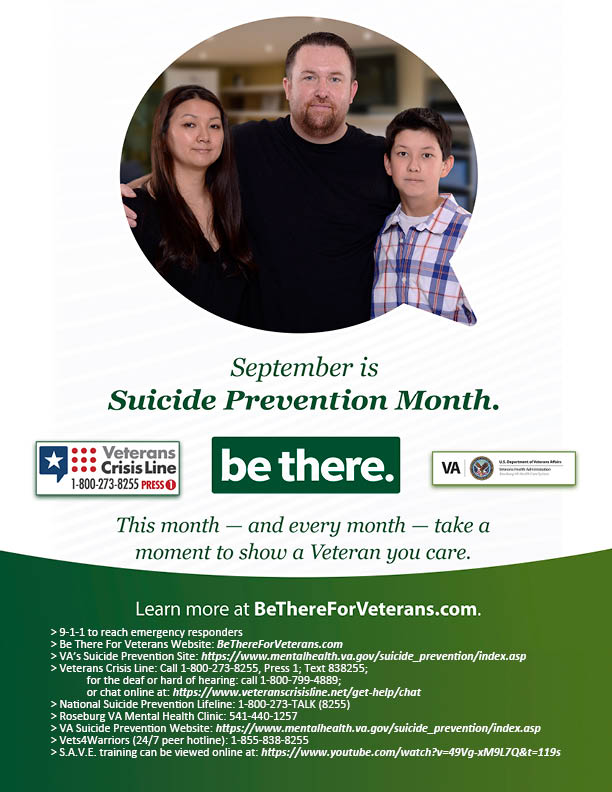 PRESS RELEASE - FOR IMMEDIATE RELEASE Roseburg VA Suicide Prevention team offers comprehensive care despite COVID-19 -Veterans are not alone |
