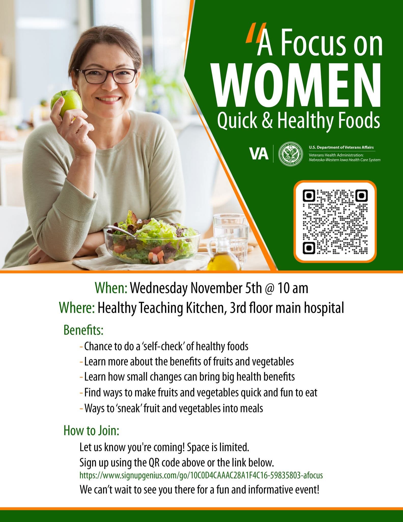 Where: Omaha VA Hospital, Healthy Teaching Kitchen, 3rd floor