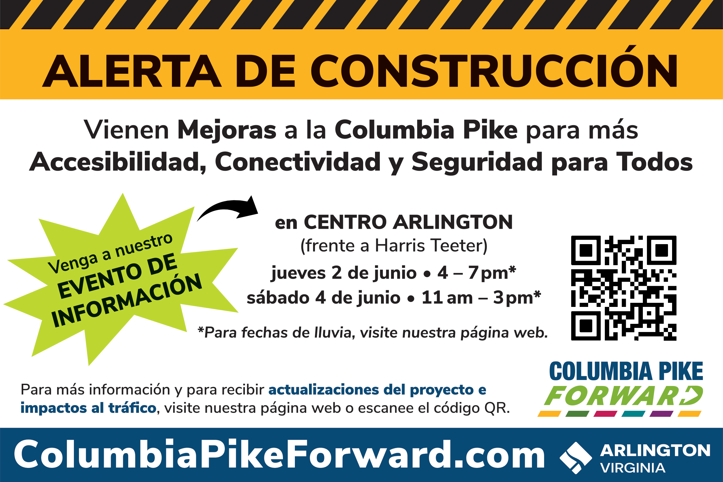 Come learn more about the planned improvements and how to travel around the sites at our Columbia Pike Forward open house events on Thursday, June 2, 2:00 P.M. to 7:00 P.M. and on Saturday, June 4 11:00 A.M. to 3:00 P.M. at the plaza at Centro Apartments (950 S George Mason Drive) at the corner of Columbia Pike and South George Mason Drive.