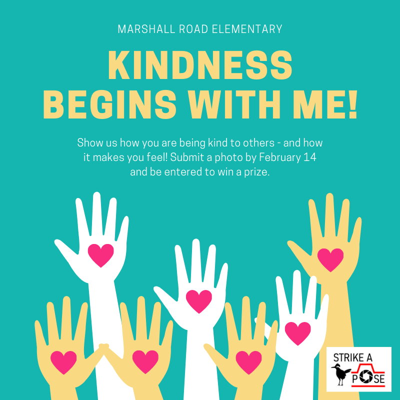 We're continuing the LOVE of the #GreatKindnessChallenge into February with our #StrikeaposeMRES photo challenge .Show us how you are being kind to others - and how it makes you feel! Submit a photo with #strikeaposeMRES to the MRES PTA Facebook page by February 14 and be entered to win a prize. Kindess Image