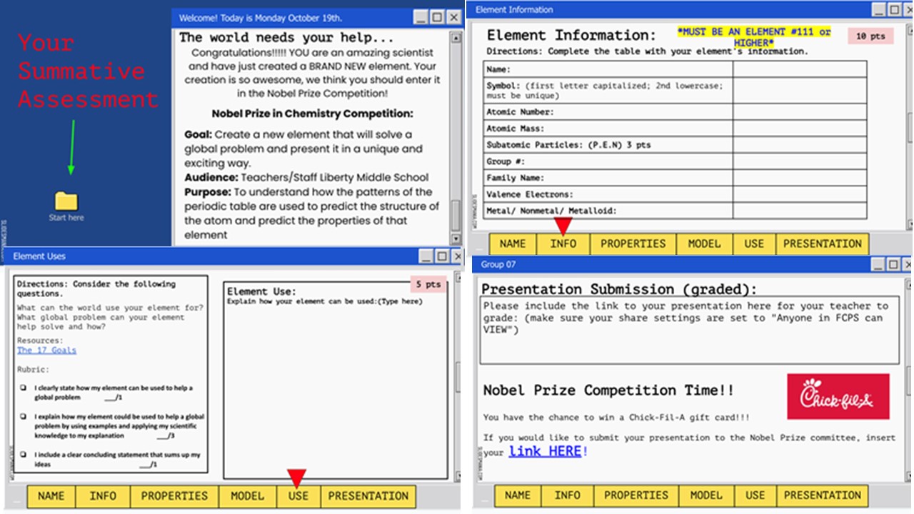 8th grade students are using their knowledge of the periodic table to create their own elements that will solve a global problem! A “Nobel Prize Committee” will determine the winners! Stay tuned, winners will be announced in the coming week! For better understanding of this photo seen this link: Classroom.jpg