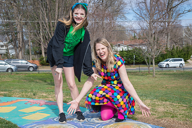 On March 30, Cunningham Park Elementary School celebrated its art teacher, Ellen O’Hearn (pictured with her daughter), for turning the sidewalk that leads from the school to the playground into a giant game board. The mural was a part of a school-wide Project-Based Learning (PBL) initiative, in which every grade level created plans to improve the play spaces at CPES.
