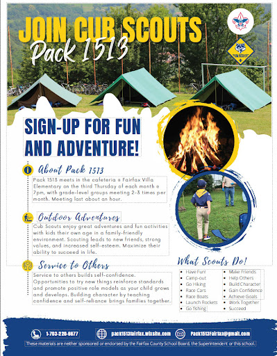 Fairfax Villa Parents and Caretakers: Do you know any Rising Kindergarteners or girls new to the Villa who want to join Girl Scouts for the new school year? Troops are forming and updating membership now! Please contact Julie Hetzler ( juliehetlzer723@gmail.com ) to get current and new students into newly formed Girl Scout troops.