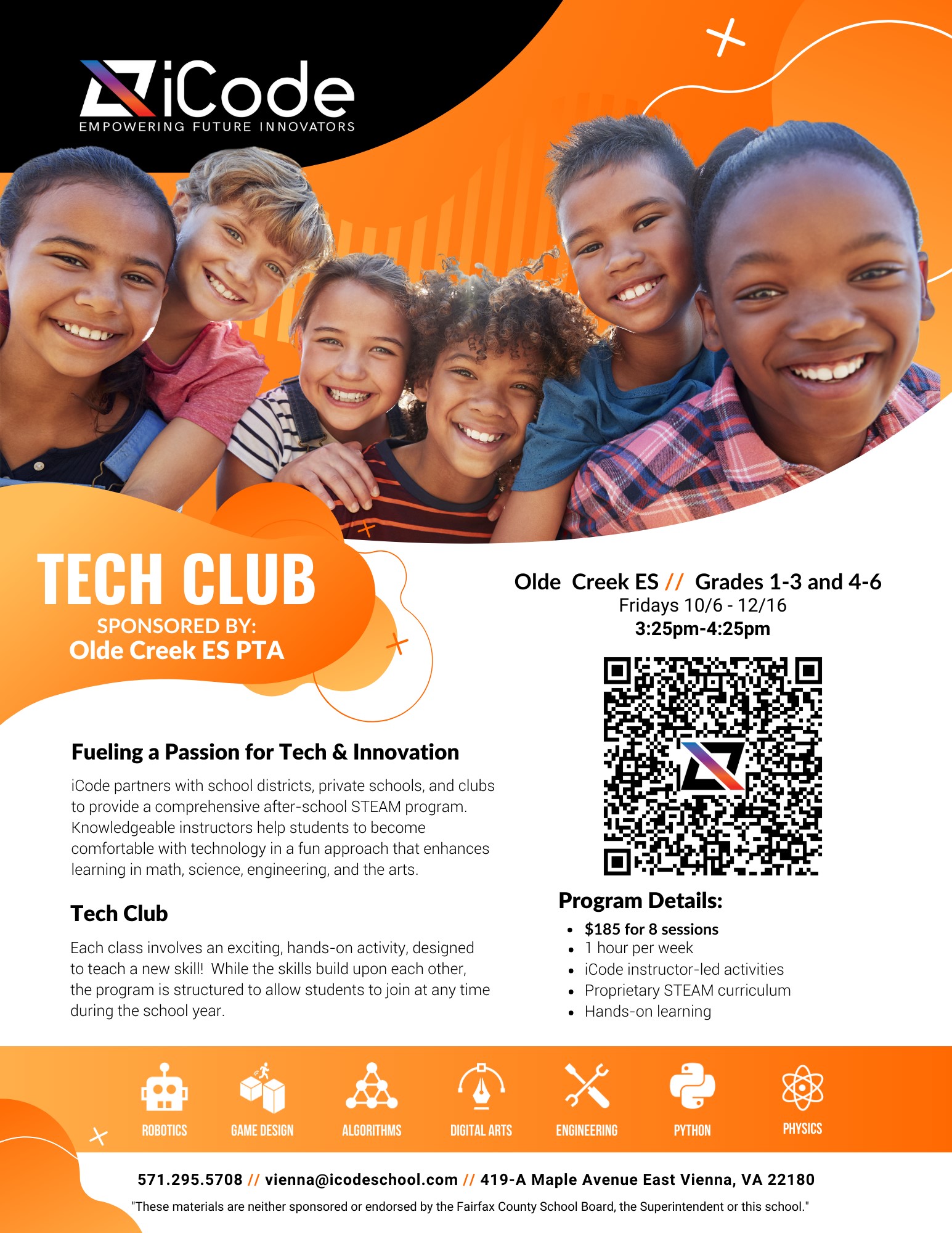 Any interested parents are invited to join us on Thursday, October 12 from 6 – 7pm in the Olde Creek Library. Our Advanced Academic Resource Teacher, Wendy Stobbe, will share an overview of available Advanced Academic Programs at Olde Creek and within Fairfax County Public Schools.