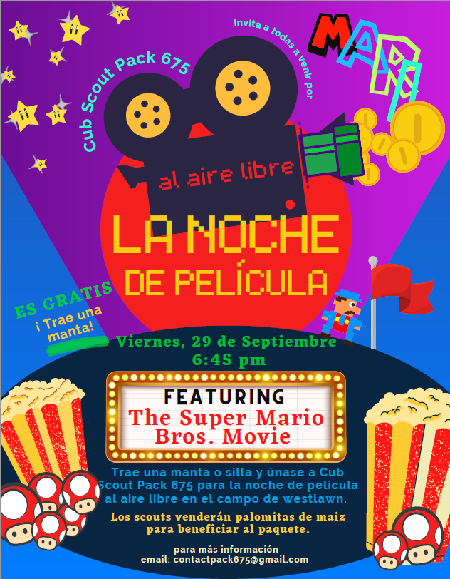 September 29: Cub Scouts Host Movie Night (PM) Spanish