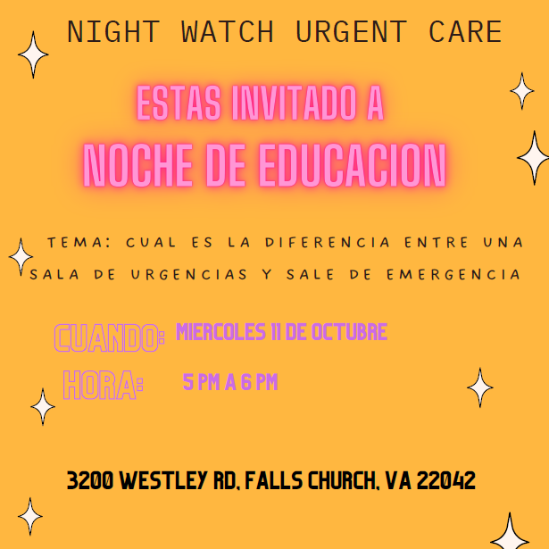 October 11: Night Watch Urgent Care Family Information Event (500-600PM, Westlawn Cafe) Spanish