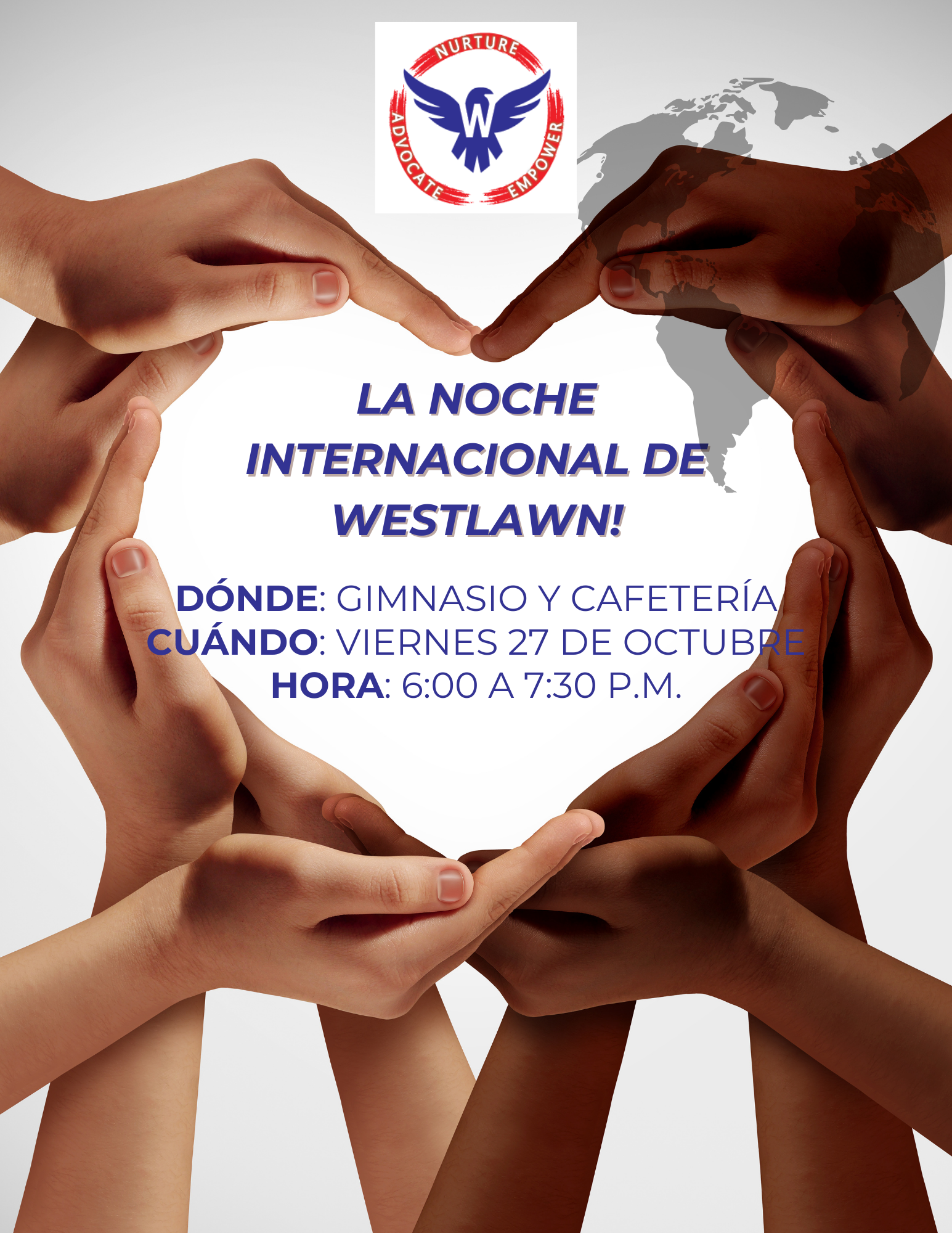 October 27: Westlawn’s International Night (600-730PM) English Spanish