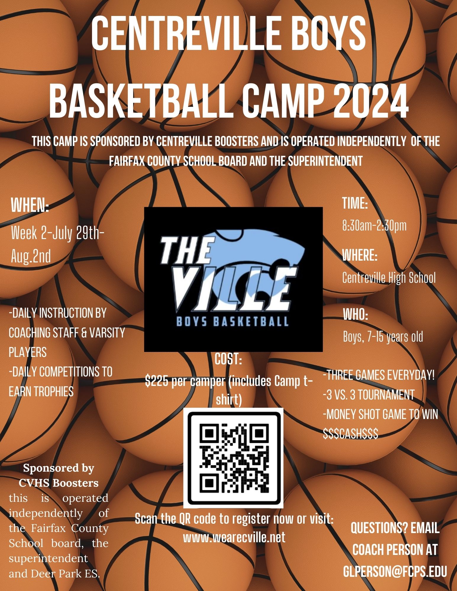 Join the fun with "The Ville/Boys Basketball" at Centreville High School. For boys 7-15 years old, July 29-August 2nd.