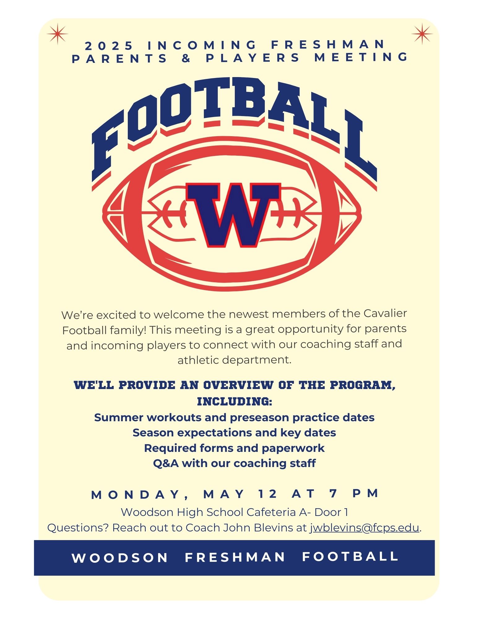 We’re excited to welcome the newest members of the Cavalier Football family! This meeting is a great opportunity for parents and incoming players to connect with our coaching staff and athletic department.