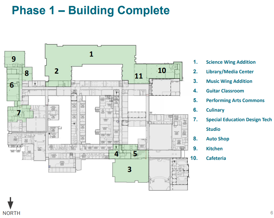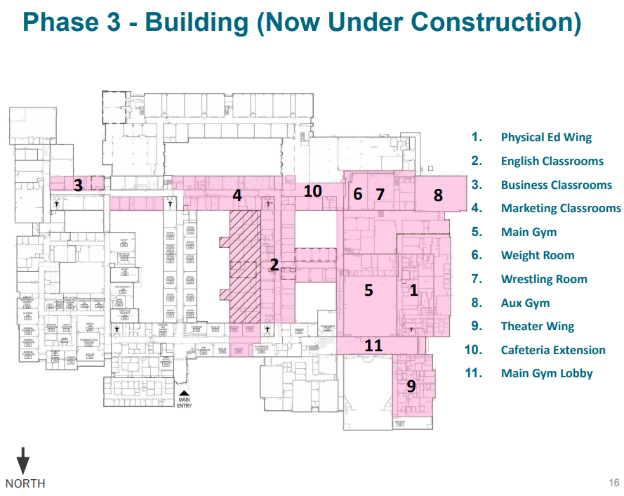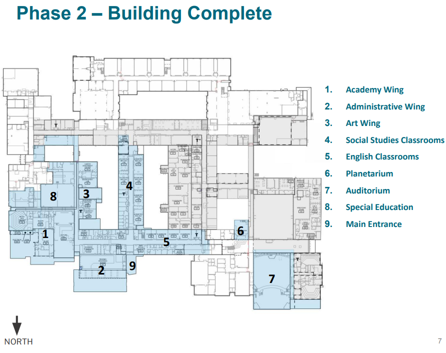 Phase 3 is currently under construction and is the final building phase of the project. The majority of this phase is expected to be completed in the spring of 2026, with the performing arts wing scheduled to be fully complete in the summer of 2026.