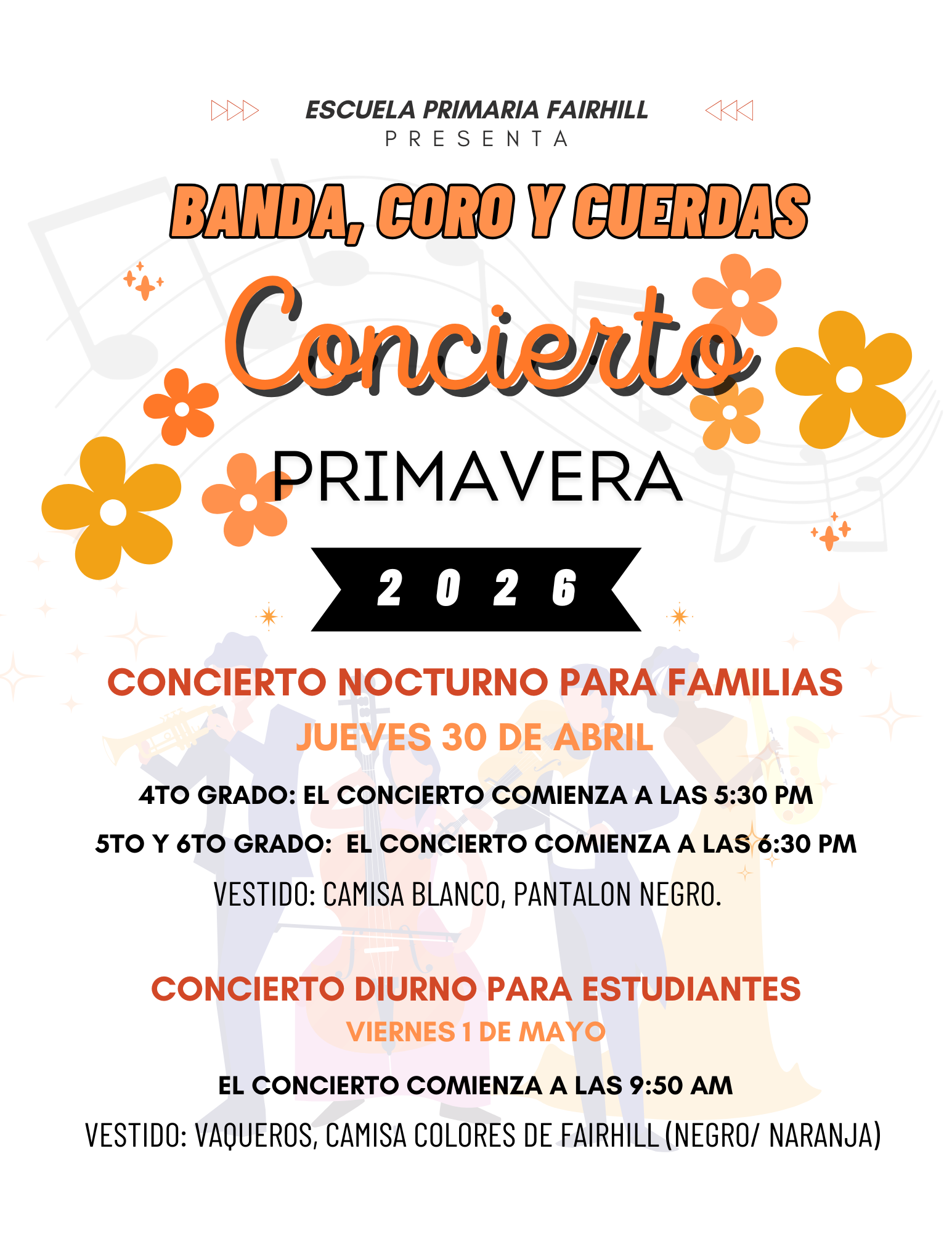 - 4th Grade Arrival 5:00 pm, Concert starts 5:30 pm