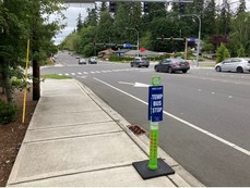 Due to construction for a new Swift Orange Line station, the northbound stop at 36th Avenue W and 179th Street SW in Lynnwood has been closed. We have installed a temporary bus stop approximately 300 feet north, across 179th Street SW. (Example of a temporary stop is pictured above.)