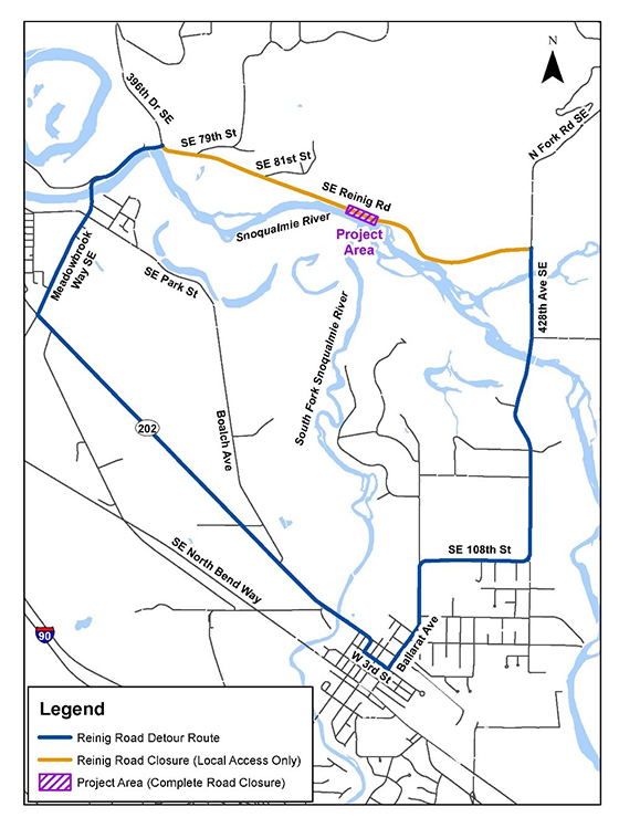 To ensure public safety, traffic control will take place on Southeast Reinig Road and a detour route will be posted. Visit kingcounty.gov/reinigroad for more information, or contact Stella Torres, Project Manager, at 206-263-0969 or by email at storres@kingcounty.gov.